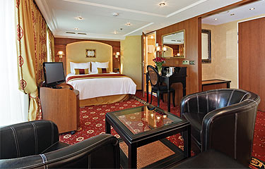 One of their Jewel-class riverboats, ms Swiss Emerald and her sister ships accommodate no more than 118 guests, while similar-sized riverboats average about 160. Guest amenities inside her 14 lush 300-square-foot suites include brocade upholstery, roomy walk-in closets with built-in drawers, spacious marble baths with full-size tubs, and two French balconies with floor-to-ceiling windows that open to idyllic riverscapes. She also sports seven 183-square-foot cabins, similarly furnished. Standard cabins (150 square feet) are cozy and comfortable and are similar in decor and style to their larger suites. 85% have floor-to-ceiling windows with real French balconies that open on to a balcony in the fresh air; all have in-room movies, minibar, adjustable heating and cooling, private bathroom and shower with Molton Brown toiletries.