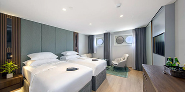 Every one of our suites and staterooms are chic, modern sanctuaries fusing authentic Asian style with contemporary design. With all the amenities you’d expect from a world-class hotel, you’ll enjoy a restful sleep in your queen or twin-size bed, as well as an en-suite bathroom, luxury toiletries and bath robes. And once back from your included excursion unwind by watching films on your HD flat-screen television and keep up with loved ones, using free Wi-Fi.